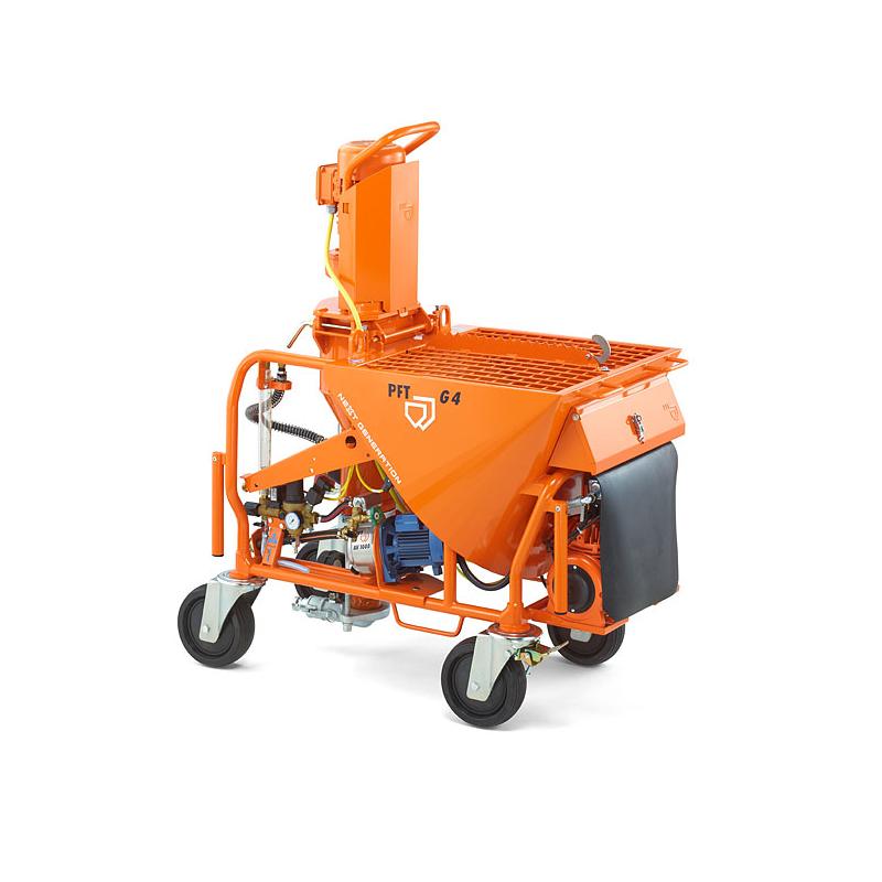 PFT G 4 jest pracującym w trybie ciągłym agregatem tynkarskim, przeznaczonym do urabiania wytwarzanych fabrycznie suchych zapraw mieszanych maszynowo. Urządzenie może być napełniane zarówno materiałem z worków jak i bezpośrednio z silosu lub kontenera za pomocą pokrywy przelotowej lub pokrywy nadmuchu oraz SILOMAT-u PFT.