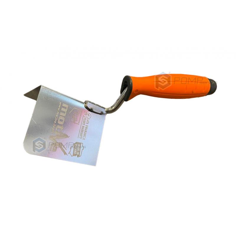Kielnia ze stali nierdzewnej z uchwytem dwukompozytowym do pracy przy wykończeniu narożników zewnętrznych. Wymiary: 65 x 80 mm