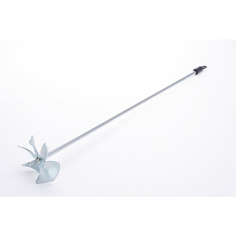 Nowe mieszadło ma całkowitą długość 500 mm i średnicę głowicy roboczej = 90 mm. Pręt ma przekrój sześciokąta (mocowanie HEX). Z takim mieszadłem bez problemu wymieszasz ciekłe masy, bez rozchlapywania i ich napowietrzenia, a dobrze dobrana grubość stali, zagwarantuje długą żywotność narzędzia. DOSKONAŁE MIESZADŁO DO: - żywic epoksydowych, poliuretanowych itp. - posadzek w formie płynnej - farb i lakierów - wszelkich mas płynnych, w których ważne jest zniwelowanie napowietrzenia mieszanej substancji.