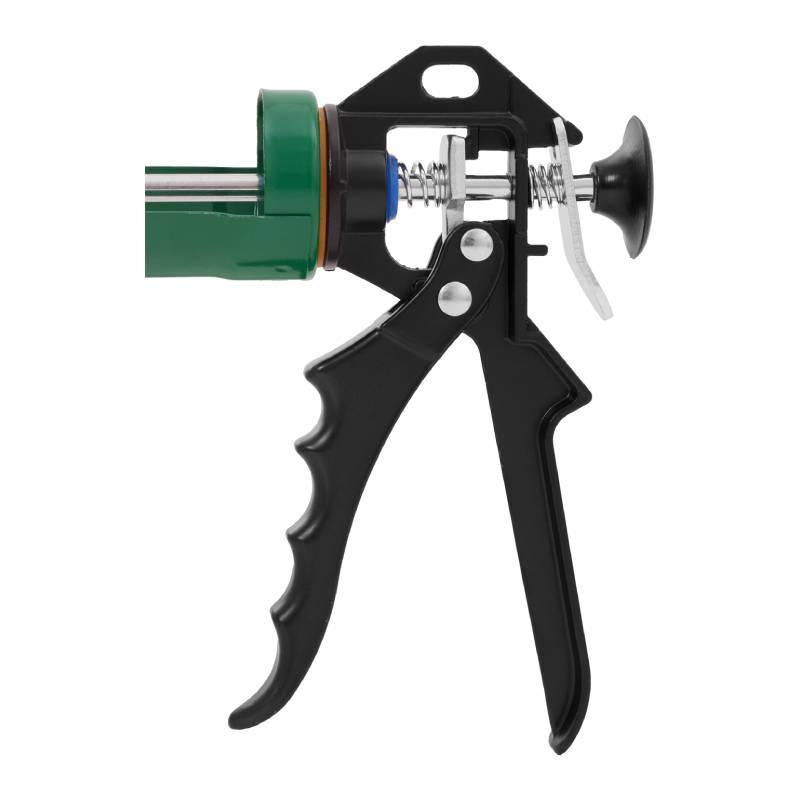 Profesjonalny wyciskacz do silikonu STALCO z obrotowym uchwytem, antypoślizgową rękojeścią i mechanizmem zapobiegającym kapaniu. Solidna stalowo-aluminiowa konstrukcja zapewnia trwałość i wygodę pracy. Idealny do użytku domowego i profesjonalnego.